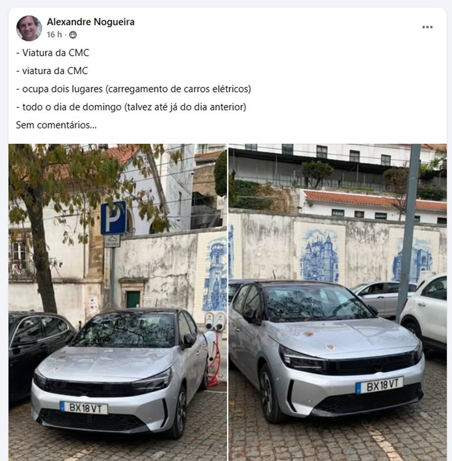 No fim de semana, um internauta denunciou na página não oficial do Facebook da Câmara Municipal de Coimbra que um veículo elétrico do município esteve a carregar no parque de estacionamento do Mercado D. Pedro V.