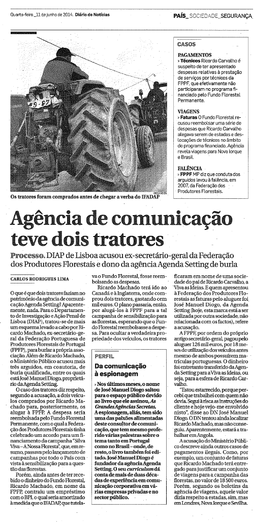 Foi este caso, entre outros, ligado às áreas da agricultura e floresta que motivou a ida da PJ a Eiras, onde funcionava a empresa Agenda Setting.