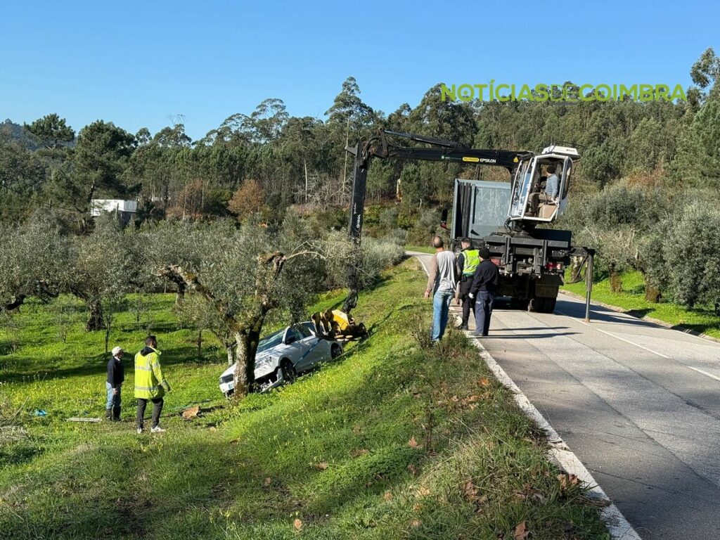 Sol “provoca” capotamento em Penacova e carro fica imobilizado entre oliveiras