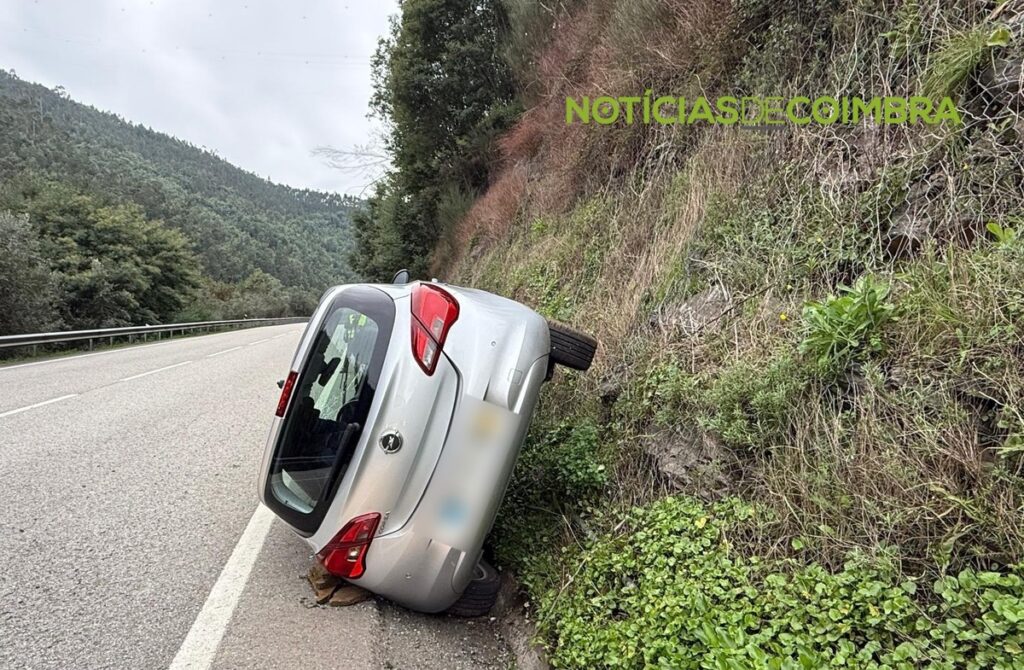 Um automóvel despistou-se e capotou na manhã desta segunda-feira, 15 de dezembro, na Estrada da Beira, na zona da localidade de Braços, no concelho de Miranda do Corvo.