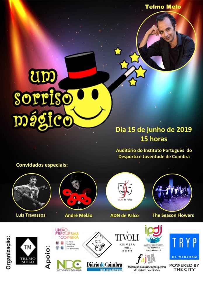 Um Sorriso Mágico decorrerá no dia 15 de Junho, pelas 15:00, no Auditório do Instituto Português do Desporto e Juventude, em Coimbra.