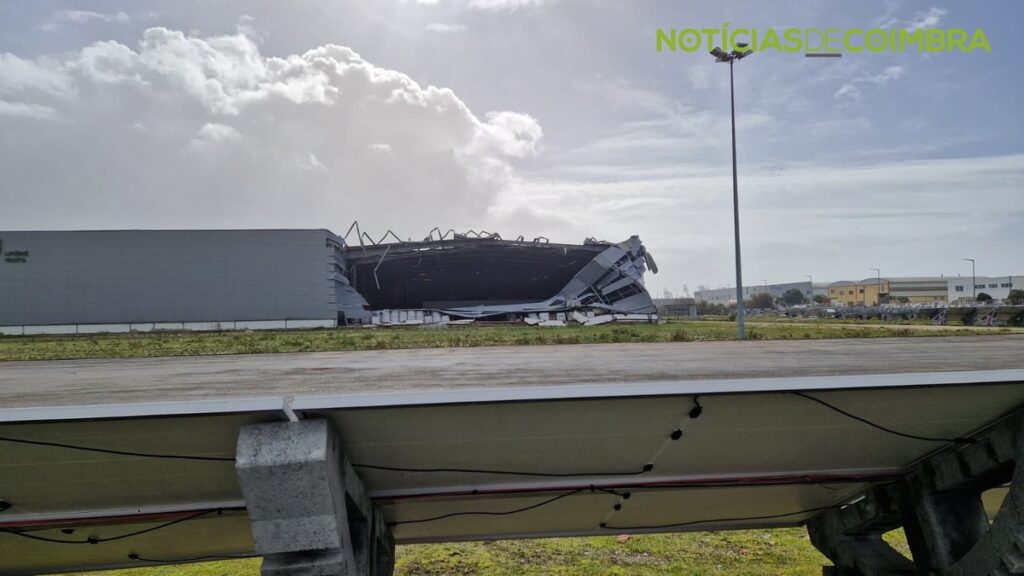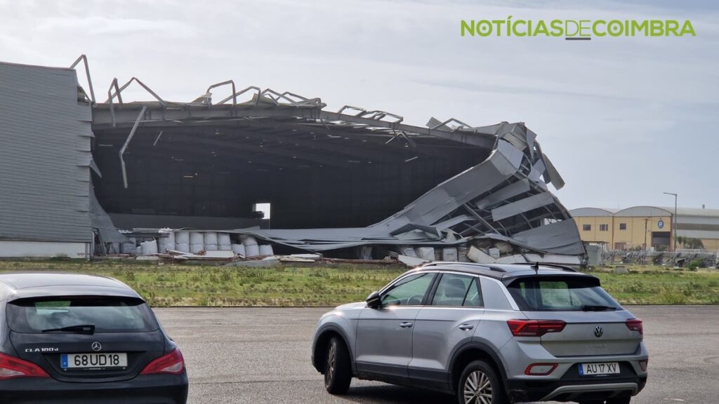 . Um dos danos mais significativos registou-se no Parque Industrial e Empresarial da Figueira da Foz, onde colapsou parcialmente um pavilhão da empresa United Resins.