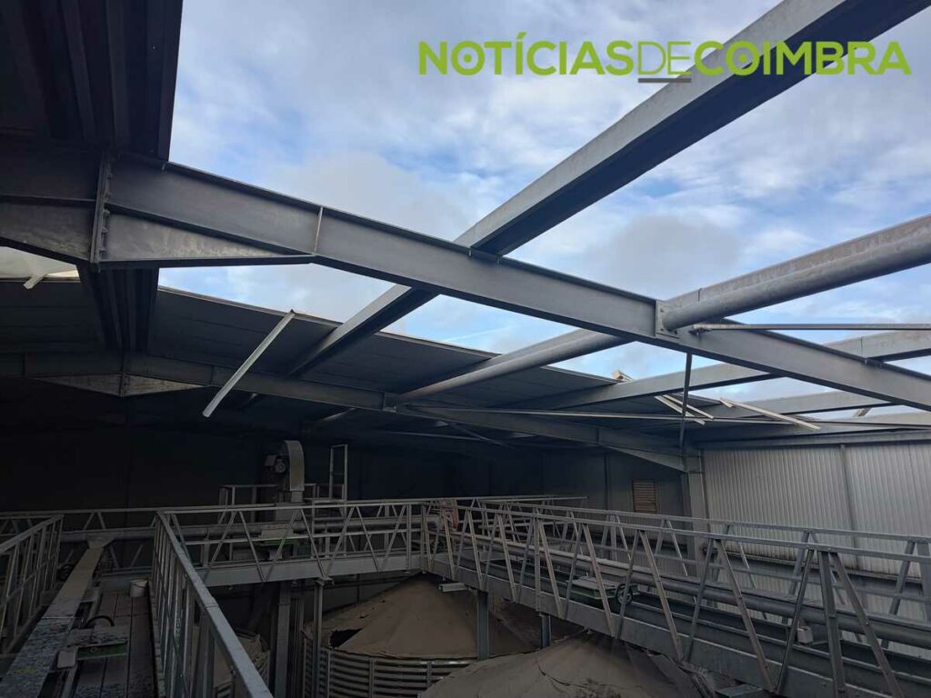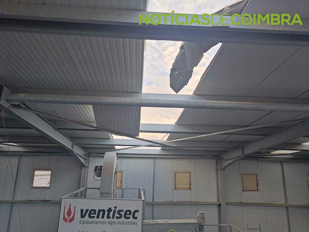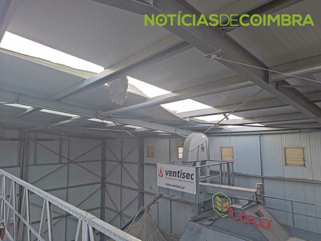 Armazém do maior produtor de arroz do Baixo Mondego ficou sem telhado.