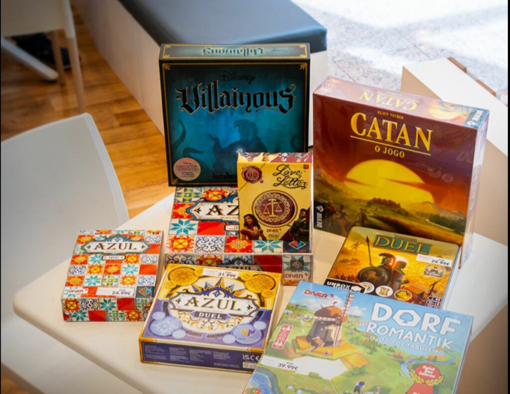 Paralelamente, o espaço disponibiliza uma seleção de jogos de tabuleiro para experimentação livre, sem necessidade de inscrição, com o apoio e orientação de um colaborador. Entre os jogos disponíveis encontram-se Wingspan, Railroad Ink, Gemstone Mine e Chronicles of Crime.