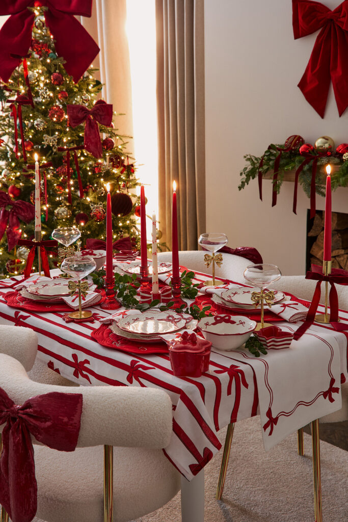 A coleção de casa aposta no icónico laço de Natal, presente em canecas, velas, cerâmicas e centros de mesa. Há também almofadas, lençóis e enfeites luminosos desde 4€, perfeitos para transformar qualquer espaço num cenário de Natal.