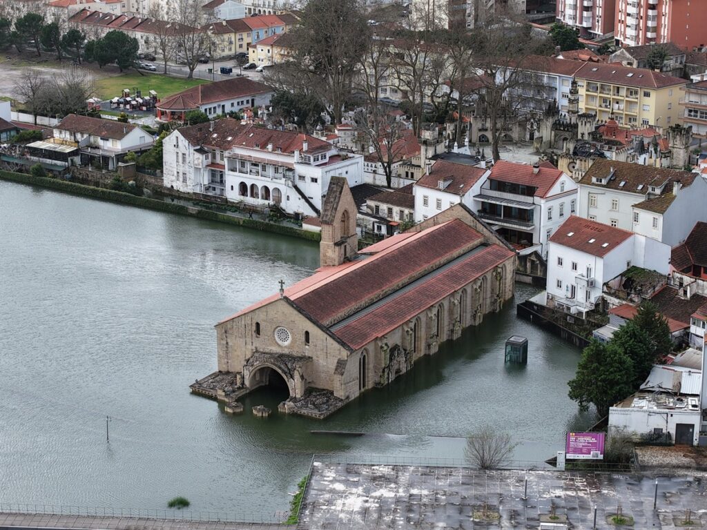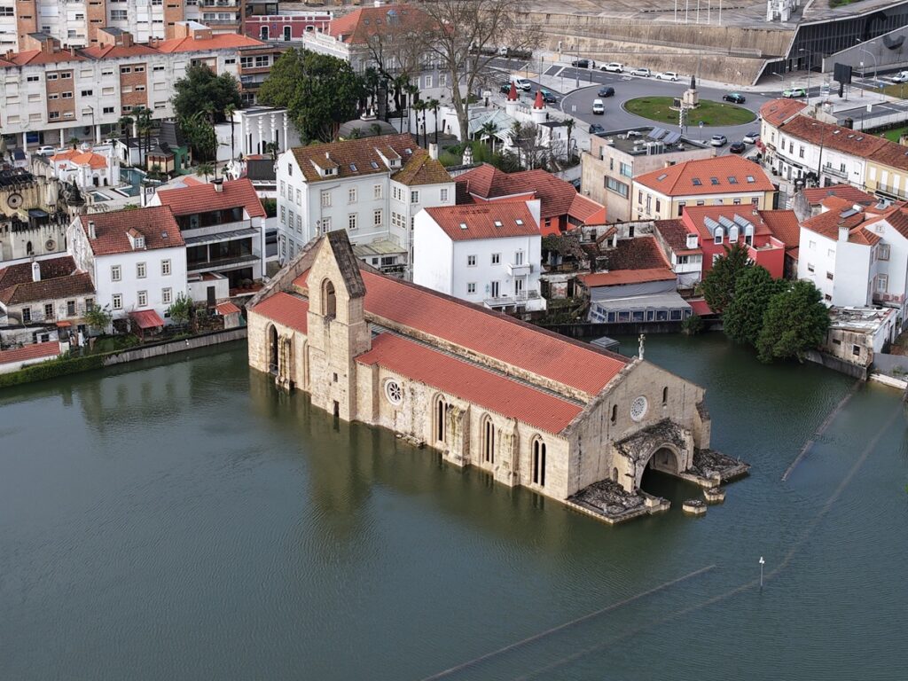 Várias fotos mostram o Mosteiro de Santa Clara-a-Velha, em Coimbra, rodeado de água.