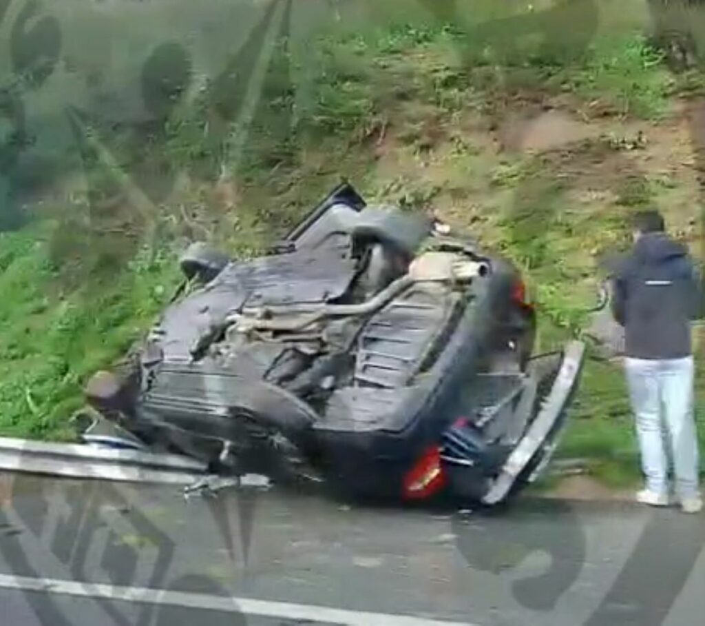 À chegada dos meios, o veículo estava totalmente tomado pelas chamas.